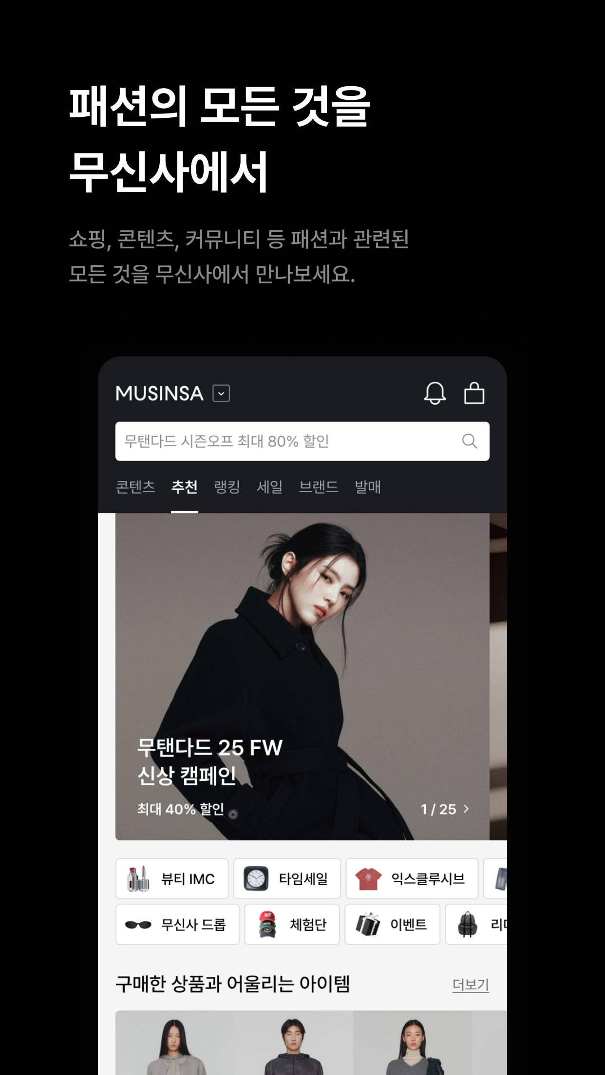 1. iOS: App Store에서 “무신사”를 검색하여 다운로드합니다.